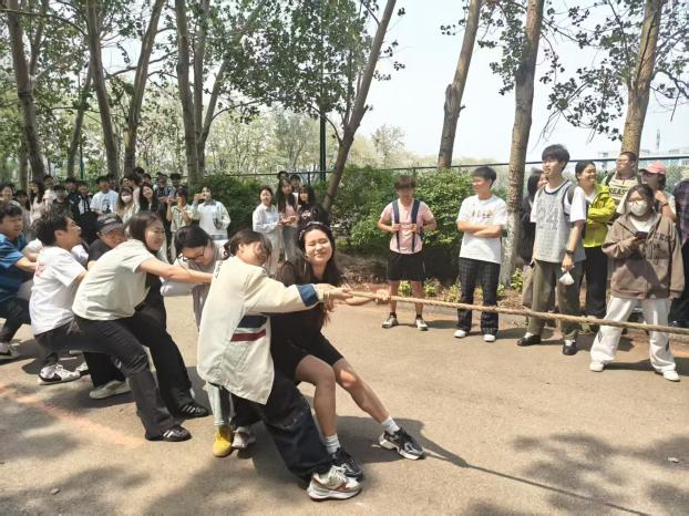 哨声划破长空,首日12时30分,比赛正式打响。参赛队员双脚如钉扎地,双手紧握麻绳,在辅导员的节奏指挥下齐声呐喊、倾身发力。赛场内外,助威声浪与号子声交织,化作青春热血的交响。首轮比拼中,各队尽显锋芒;下午的初赛更将对抗推向高潮,麻绳在拉锯中震颤,队员们青筋暴起却咬牙坚持,用顽强意志诠释体育精神。最终,化工卓越2301班、化工2303班、应化2303班三支队伍突出重围,会师决赛。