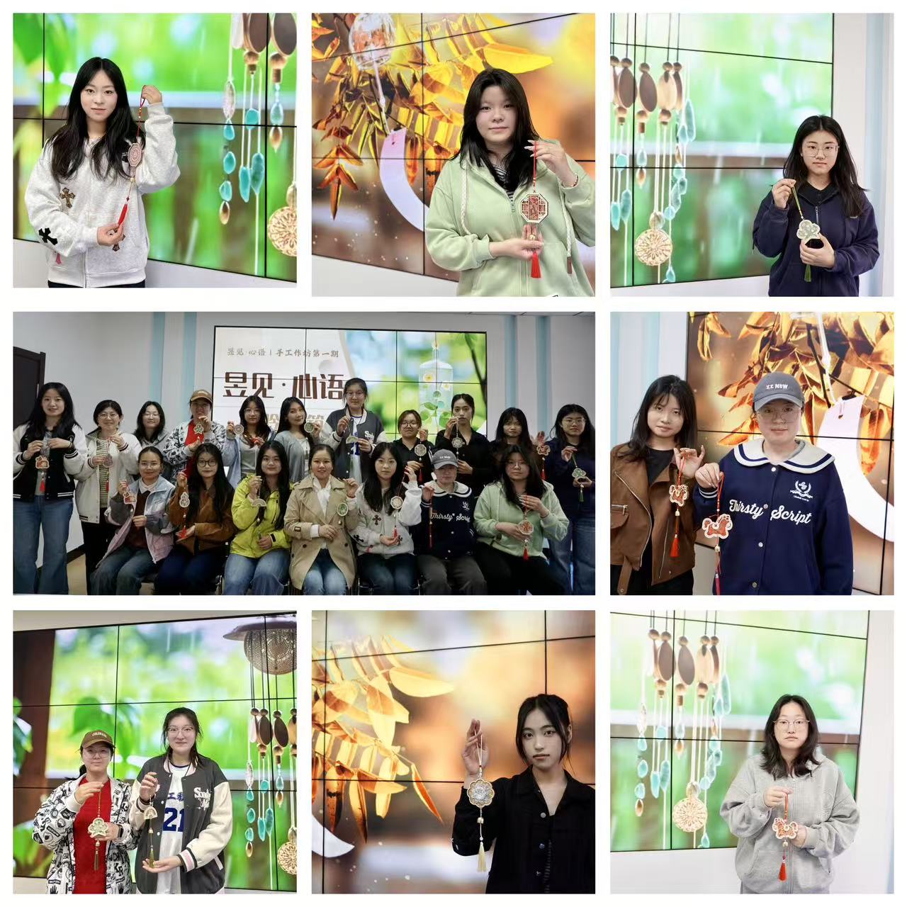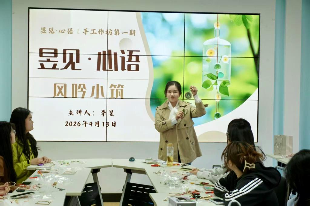 为关注大学生心理健康,引导青年在快节奏学习生活中找到舒缓情绪的出口,4月13日,昱见·心语|手工作坊第一期——“风吟小筑”制作宋锦风铃活动圆满收官。二十余名大学生齐聚一堂,在手工创作中倾听内心声响,触摸自然温度,为心理健康注入温柔能量。